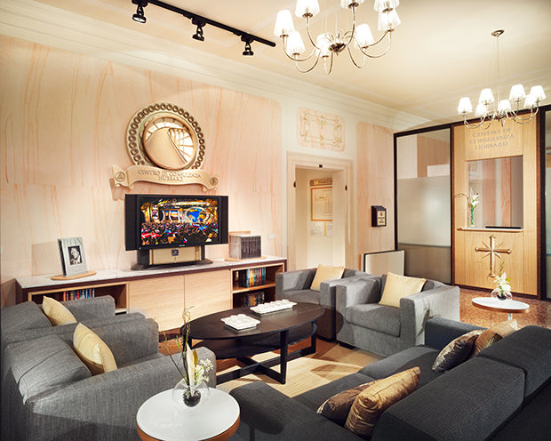 The Church of Scientology acquired and meticulously restored Villa Francesconi-Lanza as a symbol of Venetian culture and landmark for all residents of Padova. Working with a team of regional artisans, detailed reliefs, cornices and frescoes were faithfully returned to their 18th century splendor. The extensive work on the villa’s interior further included detailed preservation of original stone paving, terrazzo, and wood-beamed ceilings throughout.