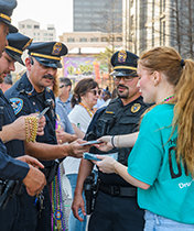 SCORING BIG AT THE BIG GAME The biggest one-day event of the year was the annual distribution drive at the Super Bowl in New Orleans. More than 120 Drug-Free World volunteers rolled through the French Quarter, ultimately reaching fans with 360,000 Truth About Drugs booklets.